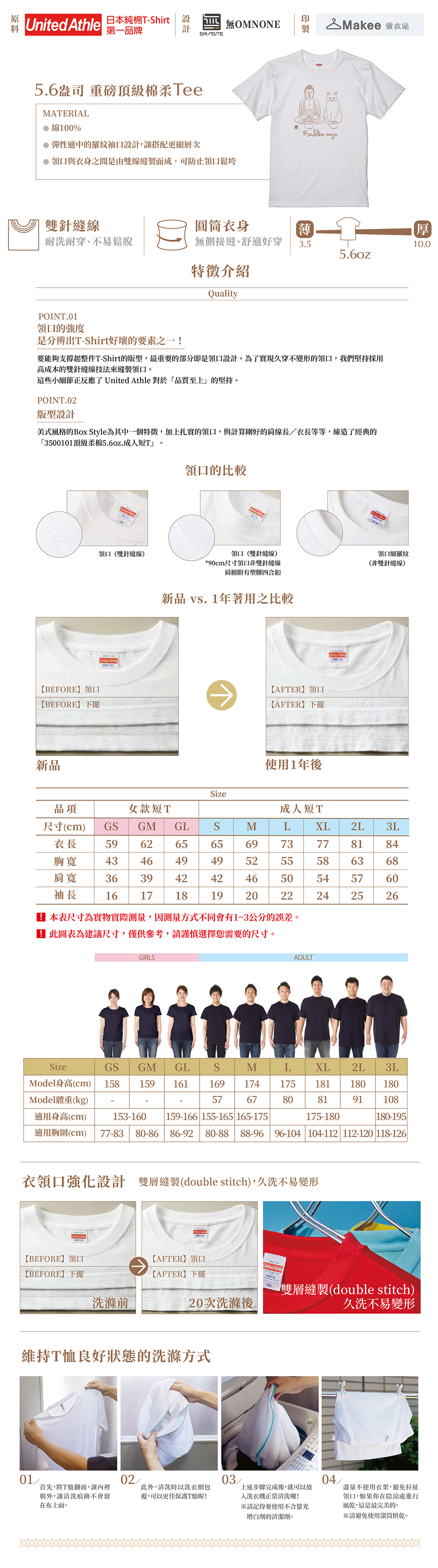《無OMNONE》推出的《佛說T恤》,為現代人提供一個佛系療癒的造型穿搭.日本品牌 United Athle 的高品質100%純棉T恤搭配禪意的佛說小圖,在每天出門之前,穿上佛說T恤,猶如化身佛陀進入生活修行,提供您滿滿的正能量,讓您在無常的日常中,擁有正能量加倍的生活時光。