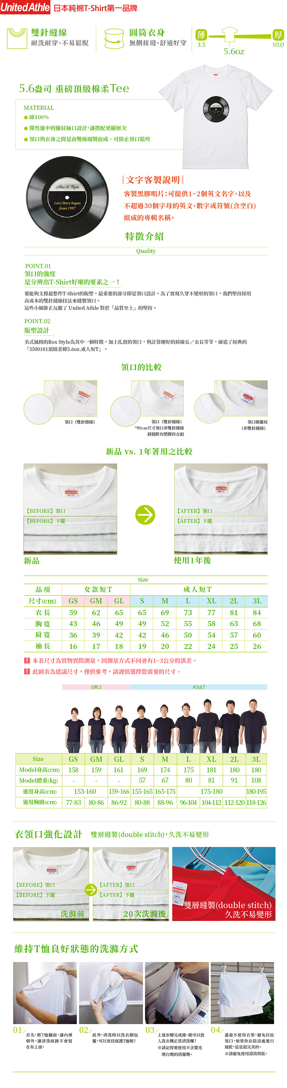 日本品牌 United Athle 的高品質100%純棉T恤,搭配客製化的文字印花,盡情表達自我,塑造獨特風格。